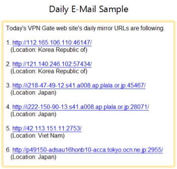 VPN Gate サービスは、最新のミラーサイト URL 一覧を電子メールで 1 日に 3
